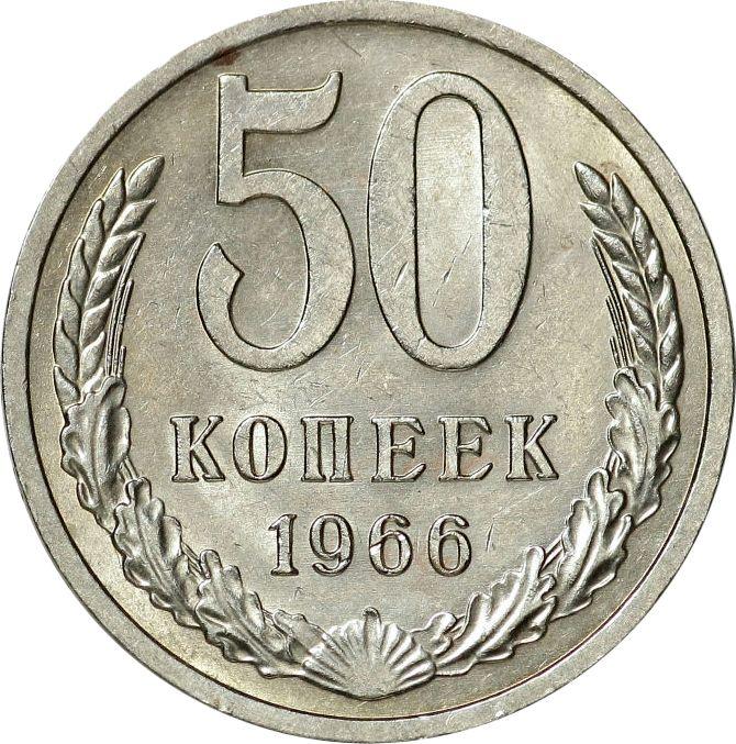 Find out the current coin value of the Russian 50 Kopeks 1966 . This nickel silver coin from the times of USSR. Wondering how much a coin like this is worth? The record price belongs to the lot 63263 sold at the Heritage Auctions auction for USD 69. Bidding took place June 26, 2014.