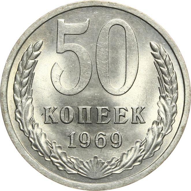 Find out the current coin value of the Russian 50 Kopeks 1969 . This nickel silver coin from the times of USSR. Wondering how much a coin like this is worth? The record price belongs to the lot 75 sold at the MS67 auction for RUB 2,400. Bidding took place May 15, 2019.