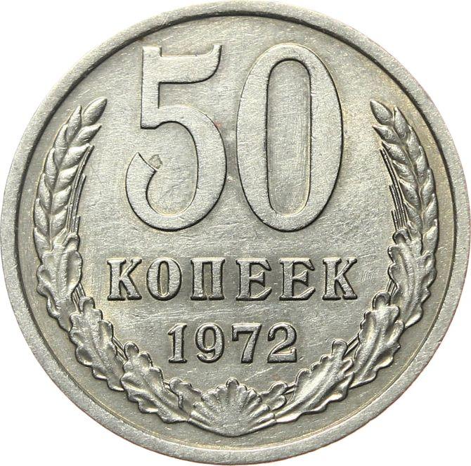 Find out the current coin value of the Russian 50 Kopeks 1972 . This nickel silver coin from the times of USSR. Wondering how much a coin like this is worth? The record price belongs to the lot 102 sold at the MS67 auction for RUB 3,600. Bidding took place May 15, 2019.