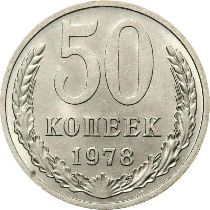 Find out the current coin value of the Russian 50 Kopeks 1978 . This nickel silver coin from the times of USSR. Wondering how much a coin like this is worth? The record price belongs to the lot 257 sold at the Russian Heritage auction for RUB 10,000. Bidding took place August 25, 2024.