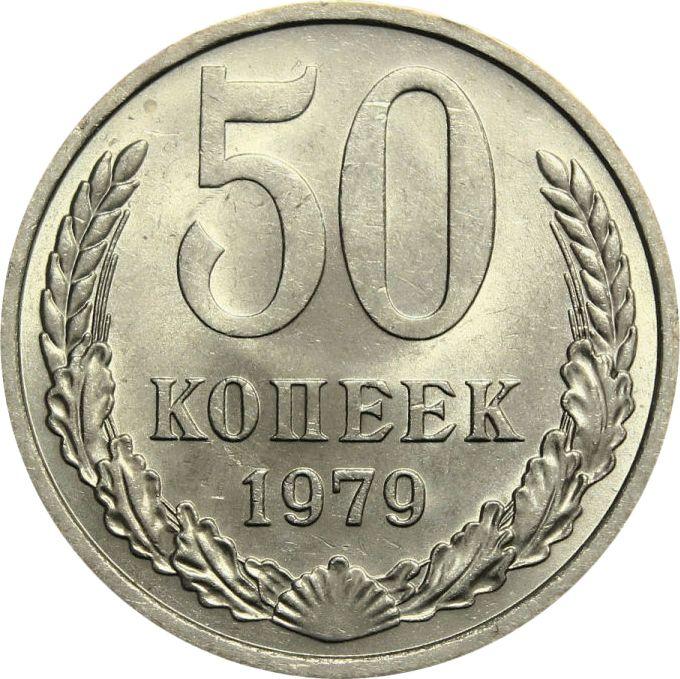 Find out the current coin value of the Russian 50 Kopeks 1979 . This nickel silver coin from the times of USSR. Wondering how much a coin like this is worth? The record price belongs to the lot 195 sold at the MS67 auction for RUB 4,800. Bidding took place May 15, 2019.