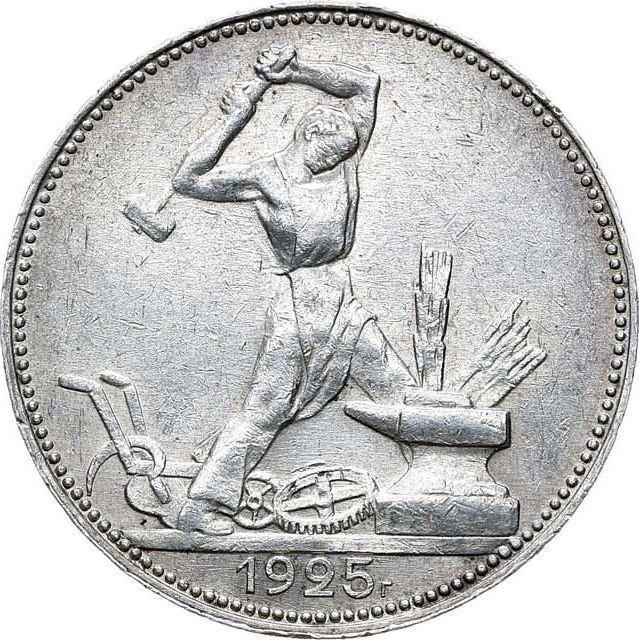 Find out the current coin value of the Russian Poltinnik (50 Kopecks) 1925 with mark ПЛ. Inscription on edge "2 З. 10,5 Д.". This silver coin from the times of USSR. Wondering how much a coin like this is worth? The record price belongs to the lot 372 sold at the AURORA auction for RUB 150,000. Bidding took place April 29, 2021.