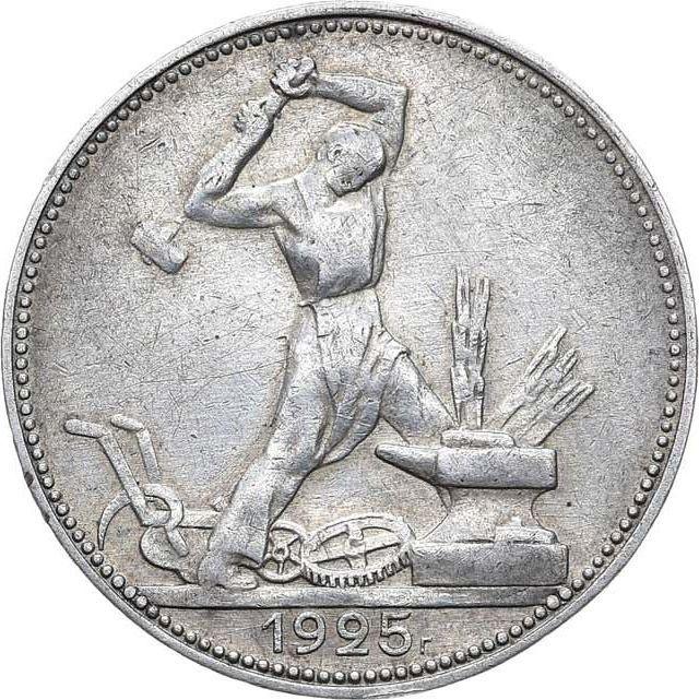 Find out the current coin value of the Russian Poltinnik (50 Kopecks) 1925 . Plain edge. This silver coin from the times of USSR. Wondering how much a coin like this is worth? The record price belongs to the lot 425 sold at the Empire auction for RUB 180,000. Bidding took place September 27, 2014.