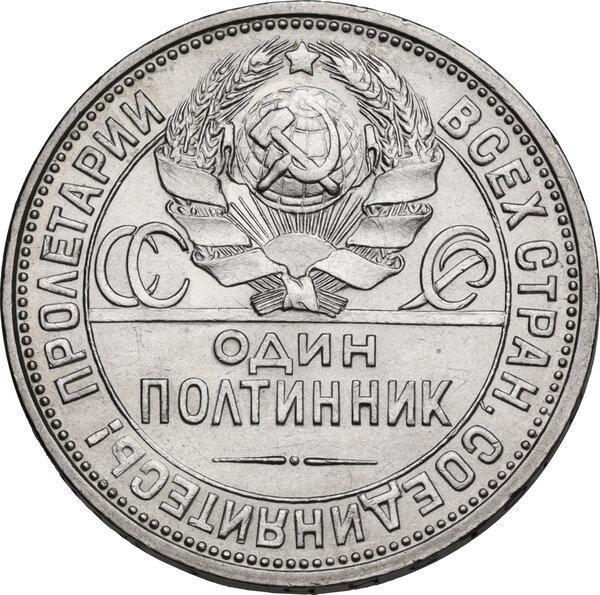 Find out the current coin value of the Russian Poltinnik (50 Kopecks) 1926 with mark ПЛ. This silver coin from the times of USSR. Wondering how much a coin like this is worth? The record price belongs to the lot 290 sold at the Rare Coins auction for USD 5,000. Bidding took place April 20, 2019.