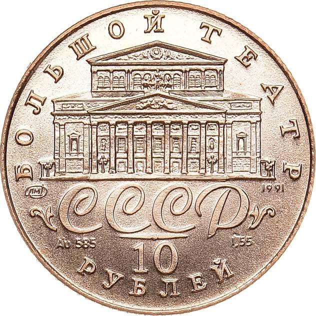 Find out the current coin value of the Russian 10 Roubles 1991 "Russian ballet" with mark ЛМД. This gold coin from the times of USSR struck at the Leningrad Mint. Wondering how much a coin like this is worth? The record price belongs to the lot 9537 sold at the Fritz Rudolf Künker GmbH & Co. KG auction for EUR 2,200. Bidding took place October 31, 2012.