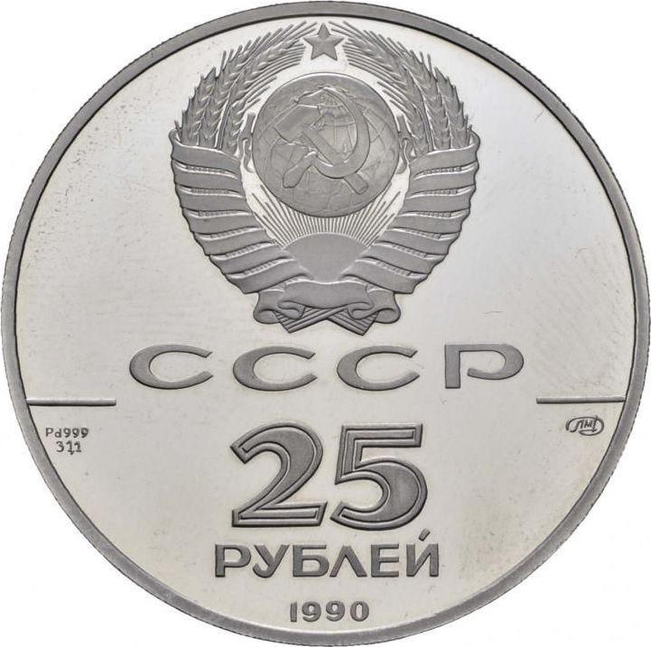 Find out the current coin value of the Russian 25 Roubles 1990 "Peter the Great" with mark ЛМД. This palladium coin from the times of USSR struck at the Leningrad Mint. Wondering how much a coin like this is worth? The record price belongs to the lot 4202 sold at the Fritz Rudolf Künker GmbH & Co. KG auction for EUR 1,900. Bidding took place March 24, 2021.