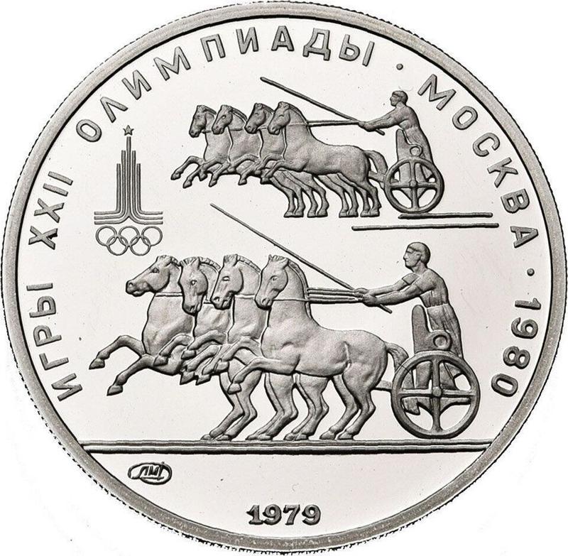 According to the latest data as of December 5, 2025 the average price of a Platinum coin 150 Roubles 1979 "Olympics - 1980. Antique Chariots" with mark ЛМД is 870 USD for regular strike and 820 USD for coins minted using the PROOF technology. The coin contains 15,5345 g of pure platinum, so we do not recommend selling it for less than 828,75 USD, even if it is in poor condition and has no collectible value.