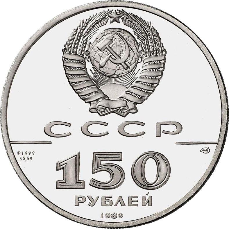 Find out the current coin value of the Russian 150 Roubles 1989 "Great Stand on the Ugra River" with mark ЛМД. This platinum coin from the times of USSR struck at the Leningrad Mint. Wondering how much a coin like this is worth? The record price belongs to the lot 3750 sold at the Ira & Larry Goldberg Coins & Collectibles, Inc. auction for USD 1,763. Bidding took place January 25, 2015.