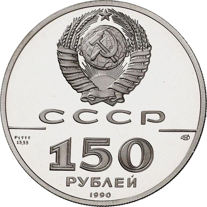 Find out the current coin value of the Russian 150 Roubles 1990 "Ship St. Gabriel" with mark ЛМД. This platinum coin from the times of USSR struck at the Leningrad Mint. Wondering how much a coin like this is worth? The record price belongs to the lot 1435 sold at the Fritz Rudolf Künker GmbH & Co. KG auction for EUR 1,700. Bidding took place January 28, 2010.