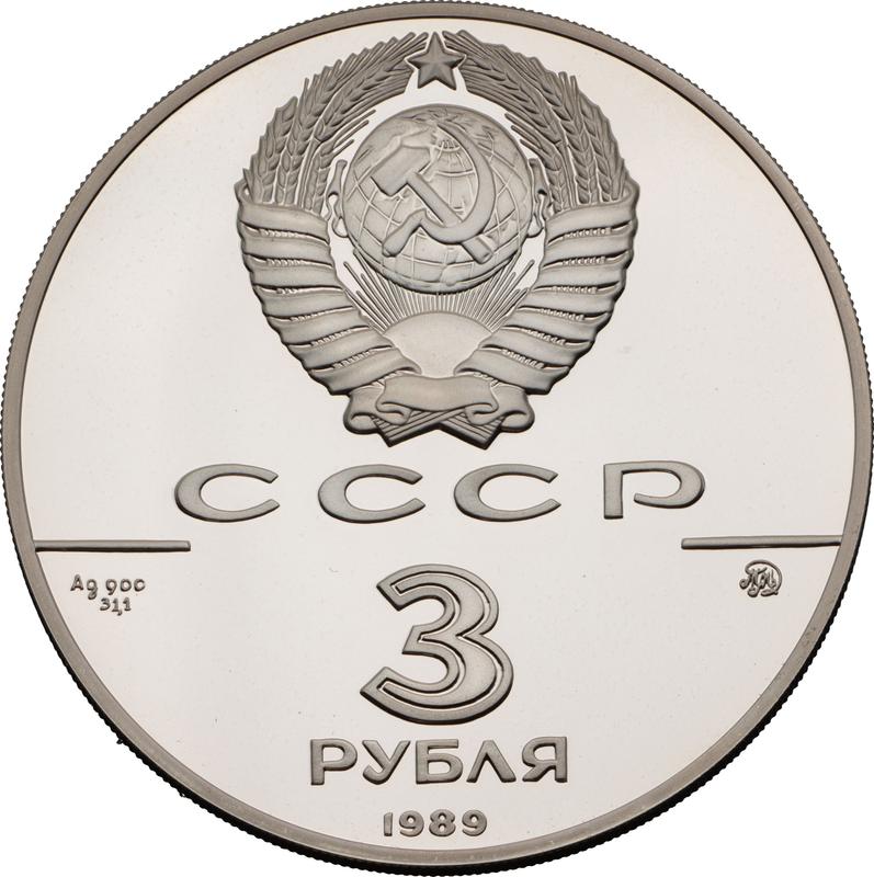 Find out the current coin value of the Russian 3 Roubles 1989 "Moscow Kremlin" with mark ММД. This silver coin from the times of USSR struck at the Moscow Mint. Wondering how much a coin like this is worth? The record price belongs to the lot 158 sold at the Rare Coins auction for RUB 430,000. Bidding took place February 25, 2024.