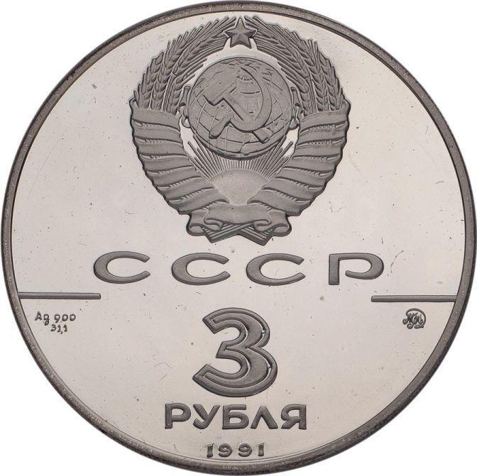 How much is the silver coin of USSR 3 Roubles 1991 ММД "Triumphal Arch"?