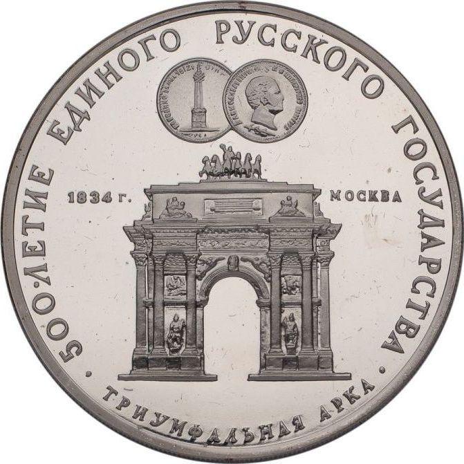 Find out the current coin value of the Russian 3 Roubles 1991 "Triumphal Arch" with mark ММД. This silver coin from the times of USSR struck at the Moscow Mint. Wondering how much a coin like this is worth? The record price belongs to the lot 1285 sold at the Numismatica Ferrarese auction for EUR 1,200. Bidding took place December 26, 2021.