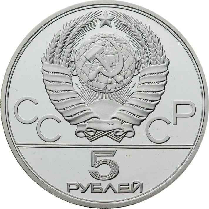 Find out the current coin value of the Russian 5 Roubles 1979 "Olympics - 1980. Hammer Throw" with mark ЛМД. This silver coin from the times of USSR struck at the Leningrad Mint