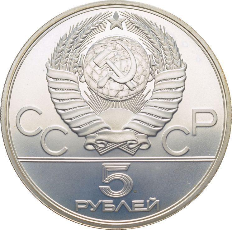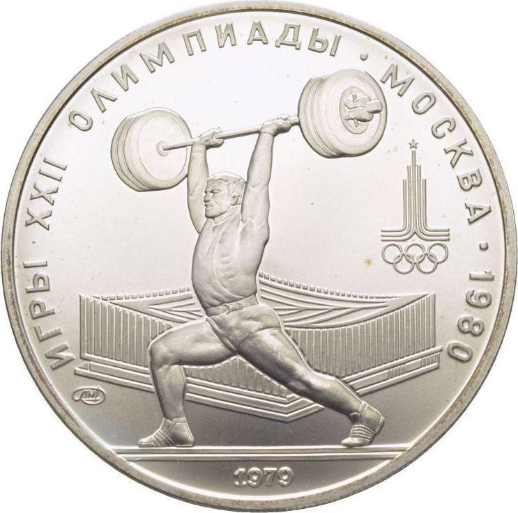 Find out the current coin value of the Russian 5 Roubles 1979 "Olympics - 1980. Weightlifting" with mark ЛМД. This silver coin from the times of USSR struck at the Leningrad Mint