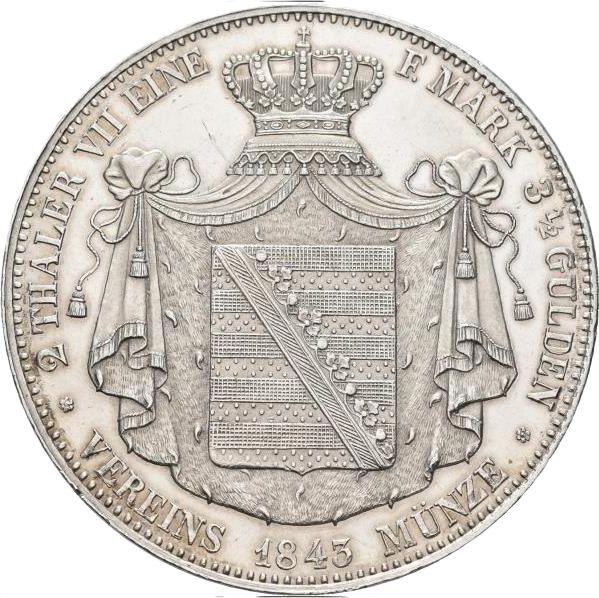 Find out the current coin value of the Saxe-Altenburg 2 Thaler 1843 with mark G. This silver coin from the times of Joseph struck at the Please provide the text you would like to be translated from Russian. Mint. Wondering how much a coin like this is worth? The record price belongs to the lot 34649 sold at the Heritage Auctions auction for USD 3,600. Bidding took place November 5, 2020.