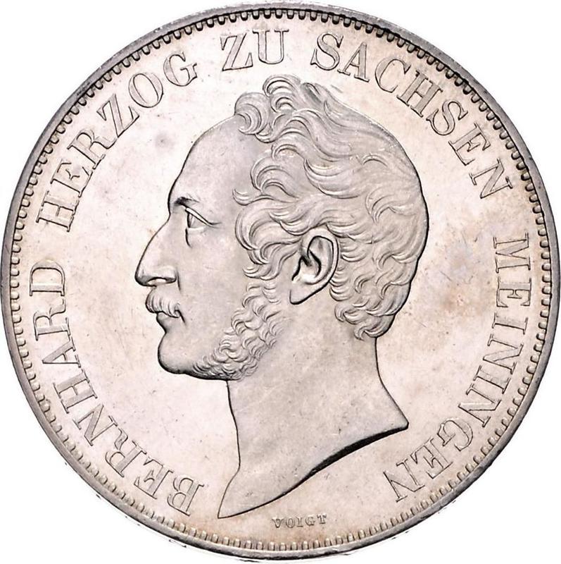 Find out the current coin value of the Saxe-Meiningen 2 Thaler 1846 . This silver coin from the times of Bernhard II struck at the Saalfeld Mint. Wondering how much a coin like this is worth? The record price belongs to the lot 399 sold at the MDC Monaco auction for EUR 6,500. Bidding took place October 23, 2024.