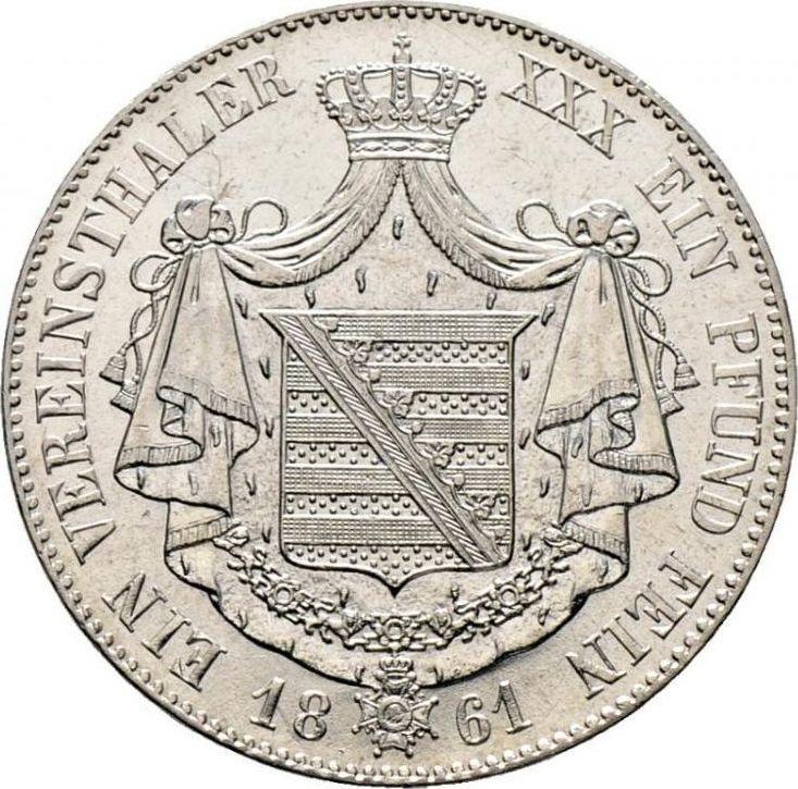 Find out the current coin value of the Saxe-Meiningen Thaler 1861 . This silver coin from the times of Bernhard II struck at the Munich Mint. Wondering how much a coin like this is worth? The record price belongs to the lot 3890 sold at the Fritz Rudolf Künker GmbH & Co. KG auction for EUR 280. Bidding took place October 6, 2014.