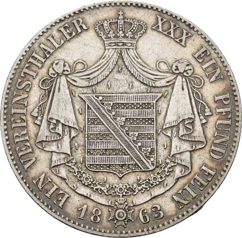 Find out the current coin value of the Saxe-Meiningen Thaler 1863 . This silver coin from the times of Bernhard II struck at the Munich Mint. Wondering how much a coin like this is worth? The record price belongs to the lot 1395 sold at the GERHARD HIRSCH Nachfolger auction for EUR 800. Bidding took place May 8, 2024.