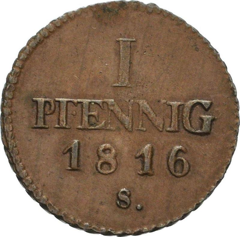 1 Pfennig 1816 S (Saxony-Albertine, Frederick Augustus I)