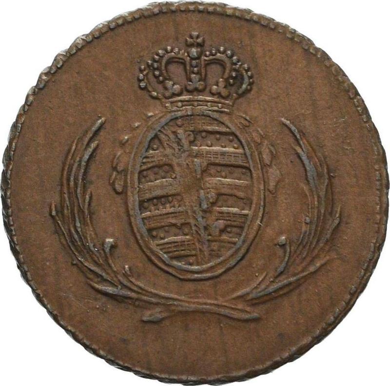 Find out the current coin value of the Saxony-Albertine 1 Pfennig 1816 with mark S. This copper coin from the times of Frederick Augustus I struck at the Dresden Mint. Wondering how much a coin like this is worth? The record price belongs to the lot 2220 sold at the Heidelberger Münzhandlung Herbert Grün auction for EUR 550. Bidding took place May 15, 2012.