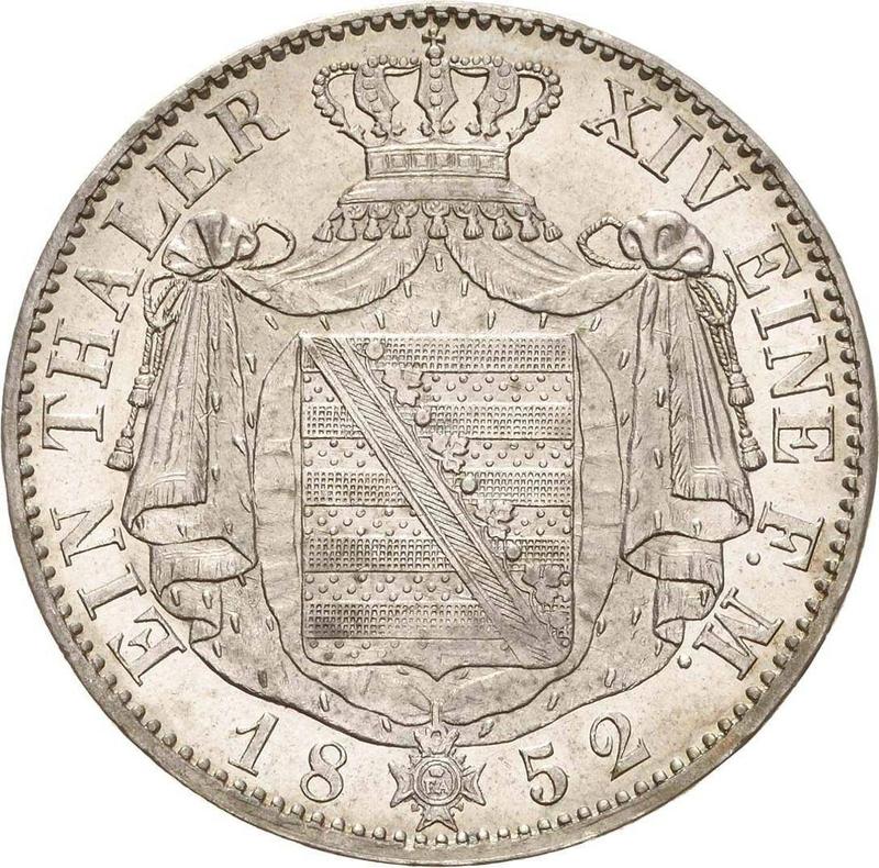 Find out the current coin value of the Saxony-Albertine Thaler 1852 with mark F. This silver coin from the times of Frederick Augustus II struck at the Dresden Mint. Wondering how much a coin like this is worth? The record price belongs to the lot 62475 sold at the Heritage Auctions auction for USD 504. Bidding took place June 9, 2021.