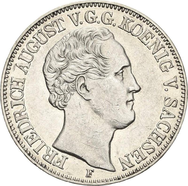 Find out the current coin value of the Saxony-Albertine Thaler 1854 "Mining" with mark F. This silver coin from the times of Frederick Augustus II struck at the Dresden Mint. Wondering how much a coin like this is worth? The record price belongs to the lot 154 sold at the Solidus Numismatik auction for EUR 700. Bidding took place March 26, 2020.