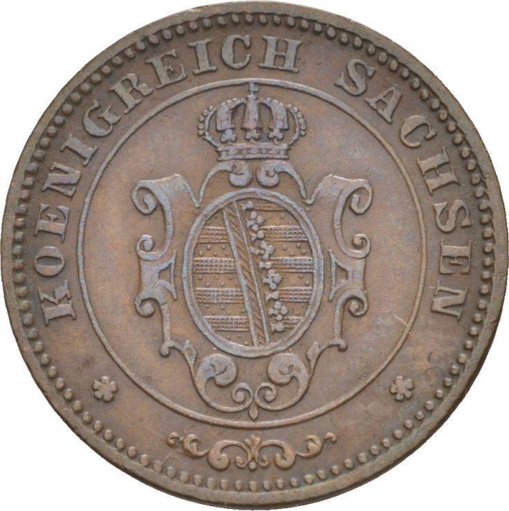 Find out the current coin value of the Saxony-Albertine 1 Pfennig 1866 with mark B. This copper coin from the times of John struck at the Dresden Mint. Wondering how much a coin like this is worth? The record price belongs to the lot 1107 sold at the WAG online Auktionen oHG auction for EUR 32. Bidding took place September 1, 2019.