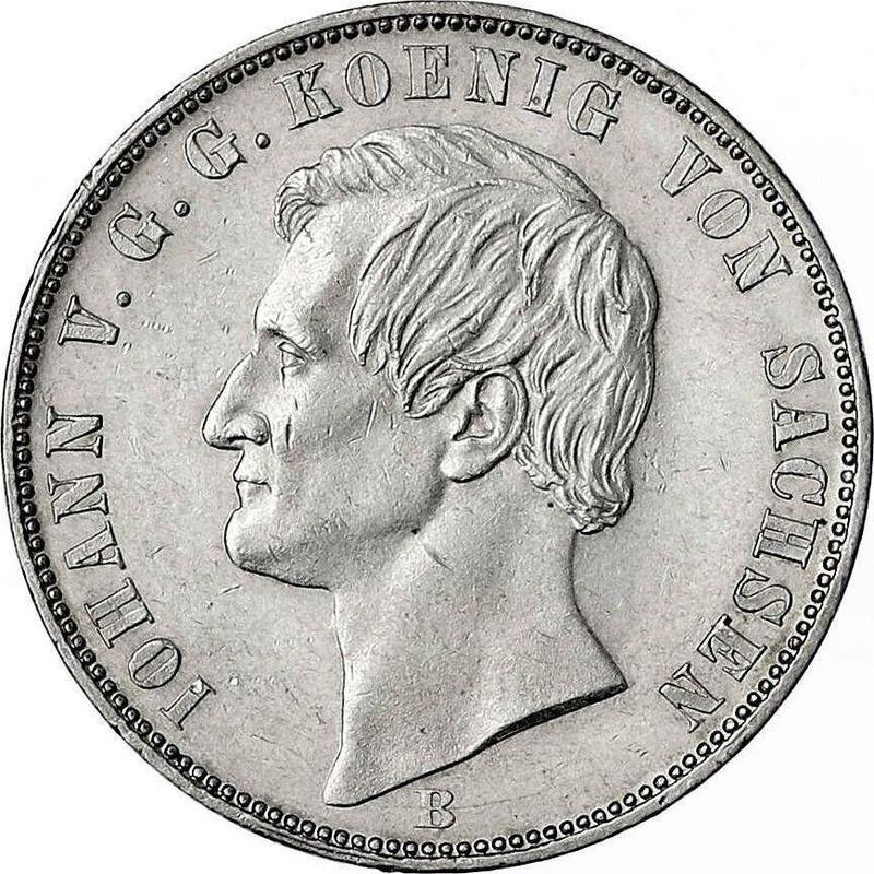 Find out the current coin value of the Saxony-Albertine Thaler 1863 with mark B. This silver coin from the times of John struck at the Dresden Mint. Wondering how much a coin like this is worth? The record price belongs to the lot 4262 sold at the Fritz Rudolf Künker GmbH & Co. KG auction for EUR 420. Bidding took place March 25, 2022.