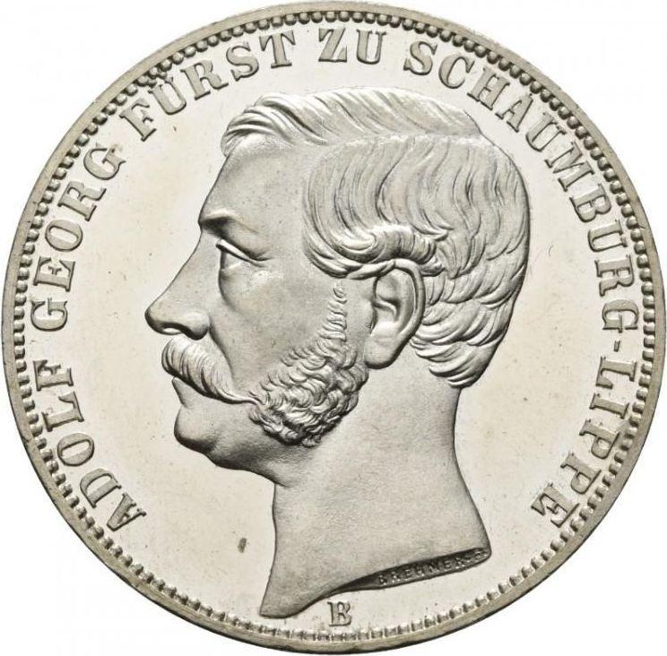 Find out the current coin value of the Schaumburg-Lippe Thaler 1865 with mark B. This silver coin from the times of Adolf Georg. Wondering how much a coin like this is worth? The record price belongs to the lot 31198 sold at the Heritage Auctions auction for USD 3,120. Bidding took place January 9, 2023.