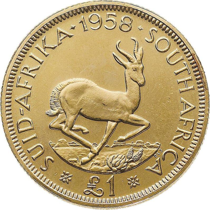 Find out the current coin value of the South African Pound 1958 . This gold coin from the times of Elizabeth II. Wondering how much a coin like this is worth? The record price belongs to the lot 1439 sold at the SINCONA AG auction for CHF 800. Bidding took place October 24, 2022.
