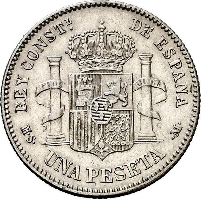 Find out the current coin value of the Spanish 1 Peseta 1881 with mark MSM. This silver coin from the times of Alfonso XII struck at the Madrid Mint. Wondering how much a coin like this is worth? The record price belongs to the lot 2044 sold at the Tauler&Fau Subastas auction for EUR 2,800. Bidding took place November 11, 2021.