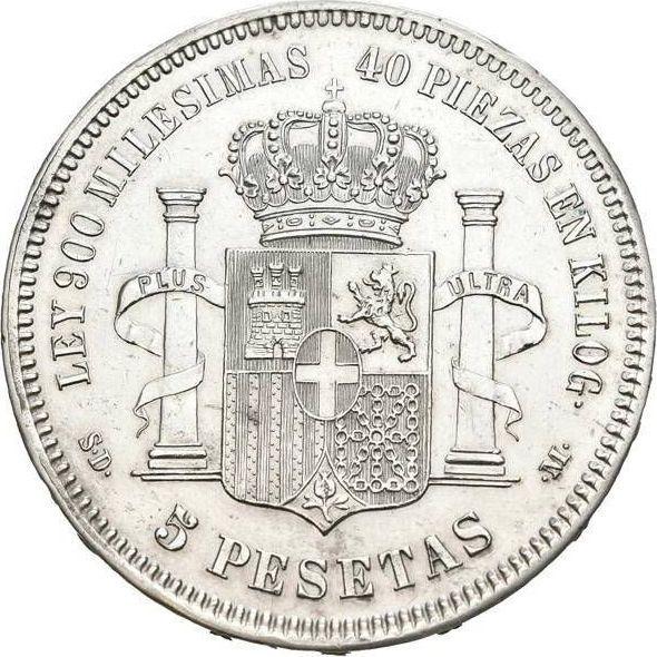 According to the latest data as of December 5, 2025 the average price of a Silver coin 5 Pesetas 1871 with mark SDM is 160 USD for regular strike and 5400 USD for coins minted using the PROOF technology.