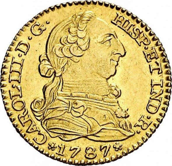How much is the gold coin of Charles III 1 Escudo 1787 M DV?