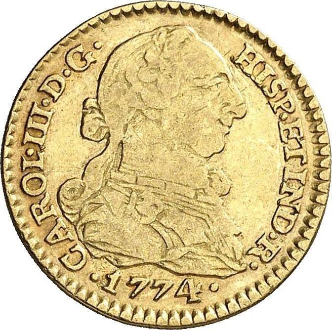 How much is the gold coin of Charles III 1 Escudo 1774 S CF?