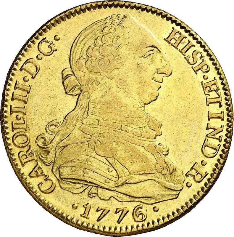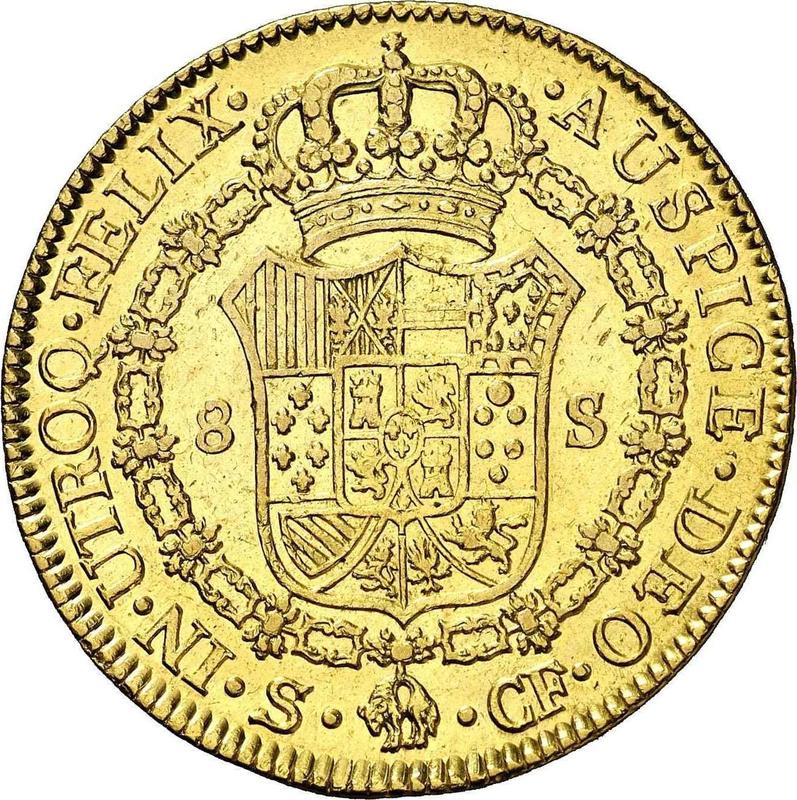 Find out the current coin value of the Spanish 8 Escudos 1776 with mark S CF. This gold coin from the times of Charles III struck at the Seville Mint. Wondering how much a coin like this is worth? The record price belongs to the lot 31084 sold at the Heritage Auctions auction for USD 12,240. Bidding took place August 19, 2021.