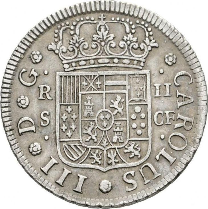 Find out the current coin value of the Spanish 2 Reales 1771 with mark S CF. This silver coin from the times of Charles III struck at the Seville Mint. Wondering how much a coin like this is worth? The record price belongs to the lot 33086 sold at the Heritage Auctions auction for USD 7,800. Bidding took place August 17, 2023.