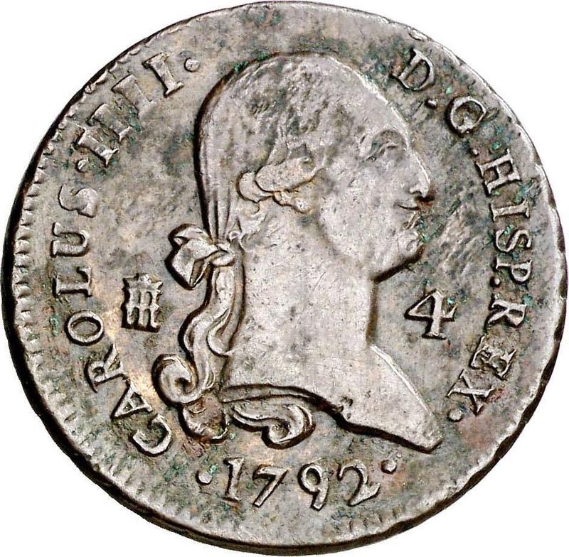 How much is the copper coin of Charles IV 4 Maravedís 1792?