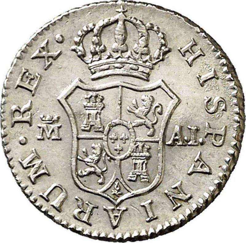 Find out the current coin value of the Spanish 1/2 Real 1808 with mark M AI. This silver coin from the times of Charles IV struck at the Madrid Mint. Wondering how much a coin like this is worth? The record price belongs to the lot 1181 sold at the Soler y Llach S.L. auction for EUR 240. Bidding took place May 9, 2019.
