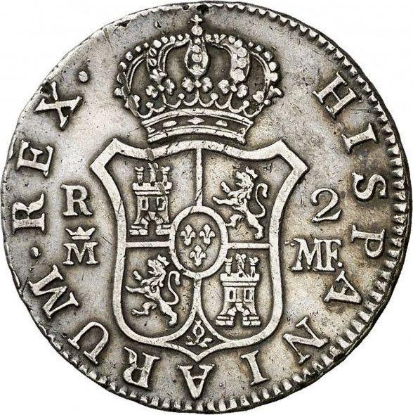 Find out the current coin value of the Spanish 2 Reales 1789 with mark M MF. This silver coin from the times of Charles IV struck at the Madrid Mint. Wondering how much a coin like this is worth? The record price belongs to the lot 3017 sold at the Aureo & Calicó, S.L. auction for EUR 70. Bidding took place December 11, 2018.