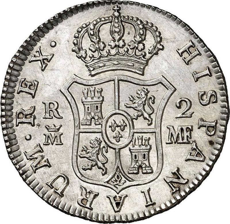 Find out the current coin value of the Spanish 2 Reales 1794 with mark M MF. This silver coin from the times of Charles IV struck at the Madrid Mint. Wondering how much a coin like this is worth? The record price belongs to the lot 688 sold at the Aureo & Calicó, S.L. auction for EUR 240. Bidding took place April 26, 2012.