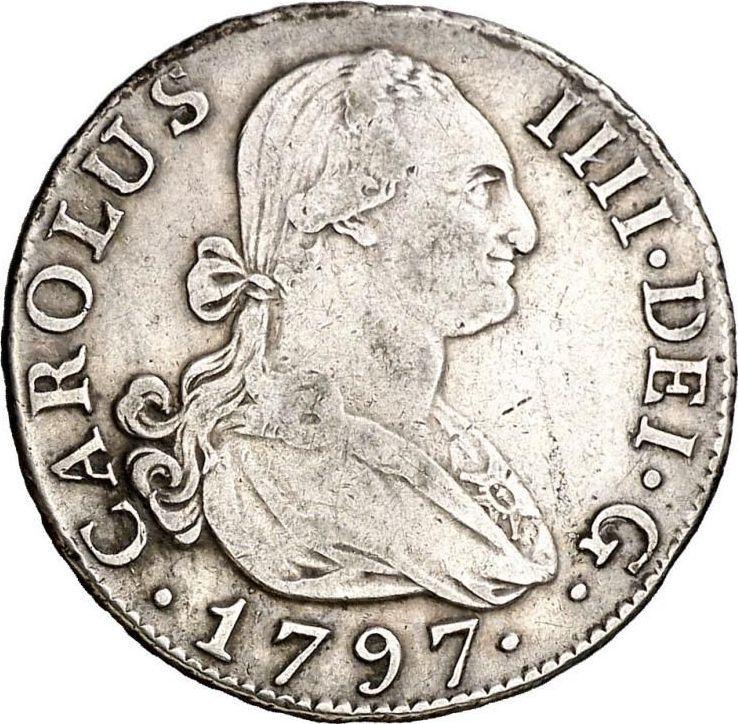 How much is the silver coin of Charles IV 2 Reales 1797 M MF?