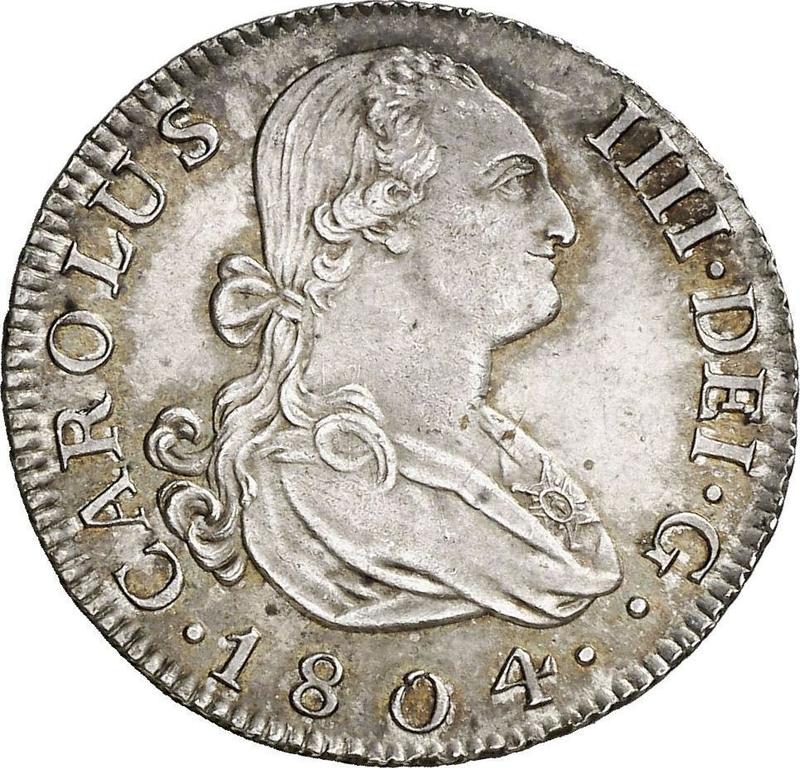 How much is the silver coin of Charles IV 2 Reales 1804 M FA?