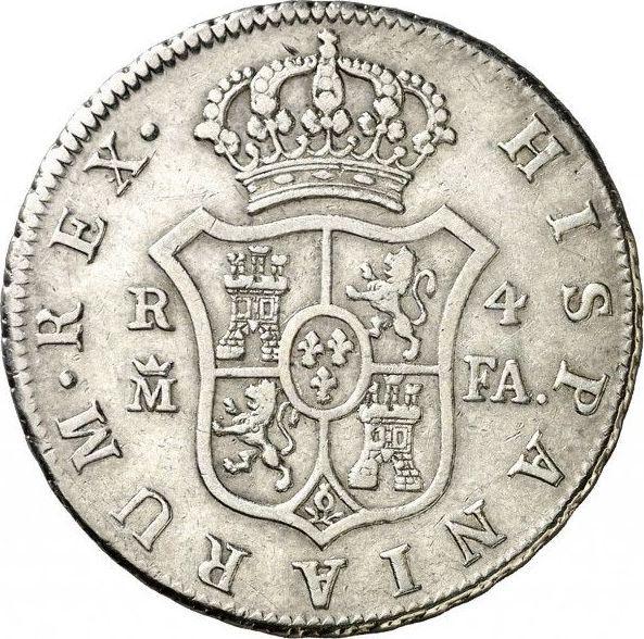 Find out the current coin value of the Spanish 4 Reales 1808 with mark M FA. This silver coin from the times of Charles IV struck at the Madrid Mint. Wondering how much a coin like this is worth? The record price belongs to the lot 61604 sold at the Heritage Auctions auction for USD 360. Bidding took place July 6, 2022.