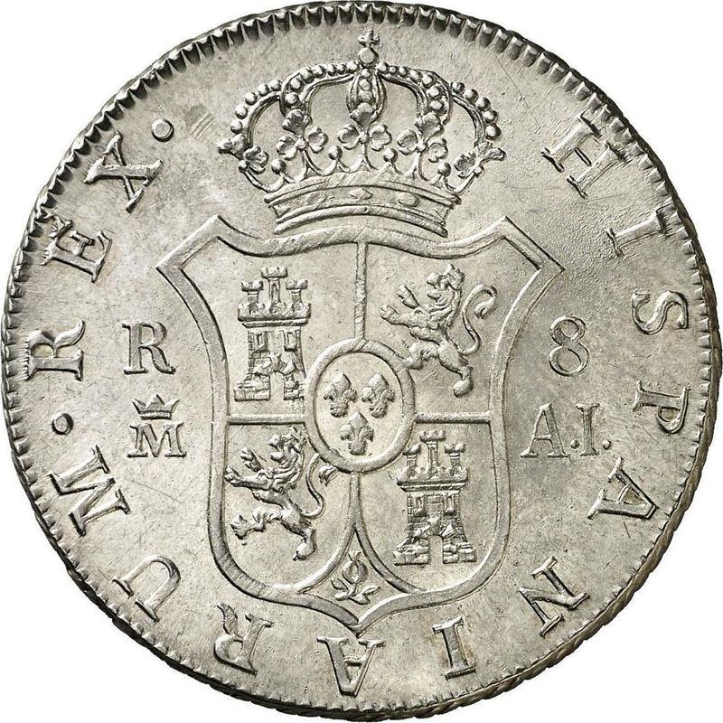 Find out the current coin value of the Spanish 8 Reales 1808 with mark M AI. This silver coin from the times of Charles IV struck at the Madrid Mint. Wondering how much a coin like this is worth? The record price belongs to the lot 31086 sold at the Heritage Auctions auction for USD 1,920. Bidding took place August 19, 2021.