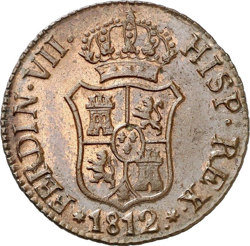 Find out the current coin value of the Spanish 3 Cuartos 1812 "Catalonia". This copper coin from the times of Ferdinand VII struck at the Catalonia Mint. Wondering how much a coin like this is worth? The record price belongs to the lot 2511 sold at the Tauler&Fau Subastas auction for EUR 323. Bidding took place January 14, 2020.