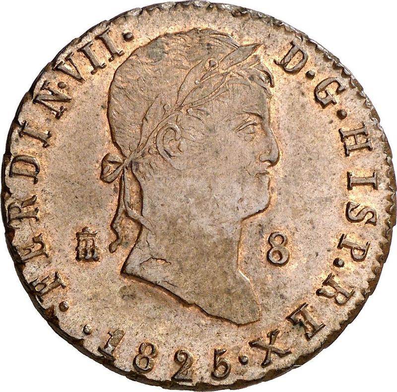 8 Maravedís 1825 "Type 1815-1833" (Spain, Ferdinand VII)
