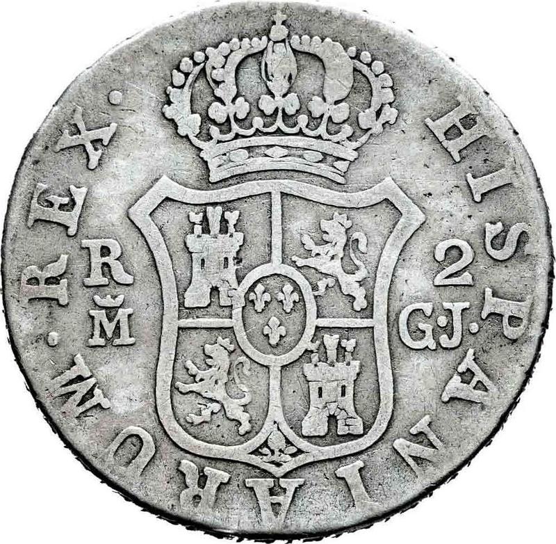 Find out the current coin value of the Spanish 2 Reales 1817 with mark M GJ. This silver coin from the times of Ferdinand VII struck at the Madrid Mint. Wondering how much a coin like this is worth? The record price belongs to the lot 807 sold at the Tauler&Fau Subastas auction for EUR 700. Bidding took place January 31, 2023.