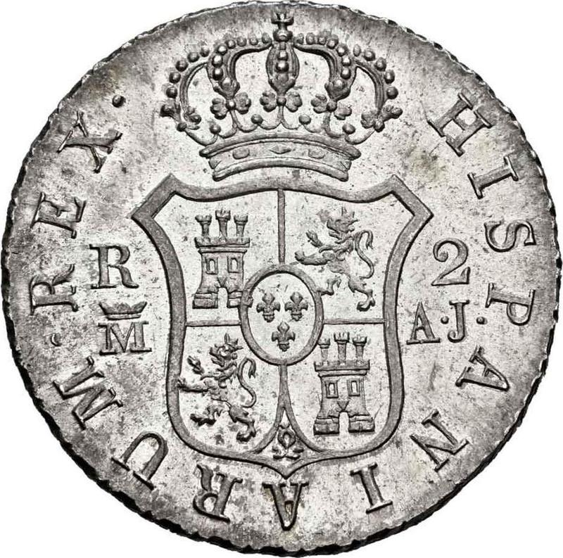 Find out the current coin value of the Spanish 2 Reales 1826 with mark M AJ. This silver coin from the times of Ferdinand VII struck at the Madrid Mint. Wondering how much a coin like this is worth? The record price belongs to the lot 28684 sold at the Heritage Auctions auction for USD 940. Bidding took place April 18, 2013.