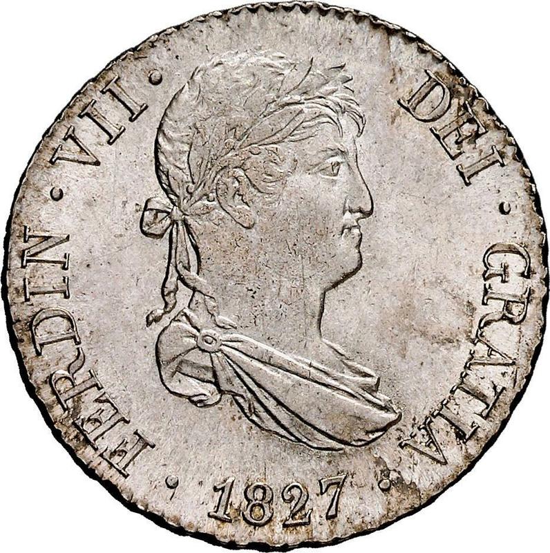 2 Reales 1827 M AJ (Spain, Ferdinand VII)