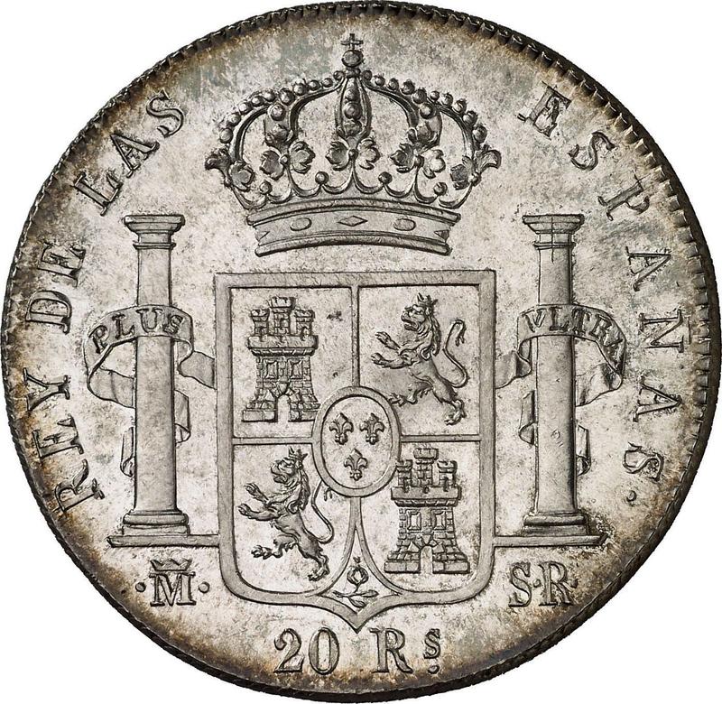 Find out the current coin value of the Spanish 20 Reales 1821 with mark M SR. This silver coin from the times of Ferdinand VII struck at the Madrid Mint. Wondering how much a coin like this is worth? The record price belongs to the lot 32358 sold at the Heritage Auctions auction for USD 23,500. Bidding took place January 8, 2017.